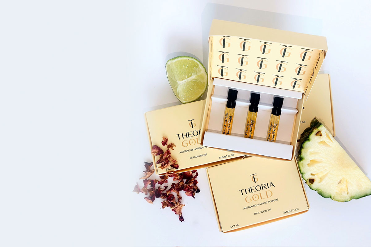 Theoria Gold Discovery Kit contains 3x 3ml bottles of Theoria Gold Perfumes – try 3 x Theoria Gold Perfumes for under $50.00!